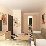 Touristic Complex Hacienda Beach Apartments propose des chambres équipées d'un balcon et d'un coin salon, ainsi que de la climatisation pour votre confort. Pour agrémenter votre séjour, une toilette séparée et une douche, un sèche-cheveux et des draps de bain invitent à une bonne nuit de repos.
